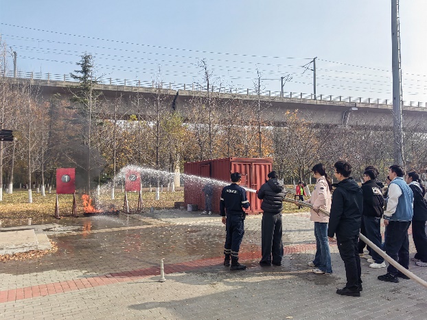 在灭火环节,每个人都进行了动手实操,手握消防水带,对准火焰进行灭火,体验了一次真正的“消防员”,让“学消防、懂消防、用消防”深入人心,成为日常安全工作的有力助手,提高安全意识。